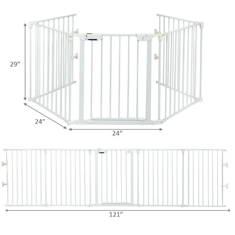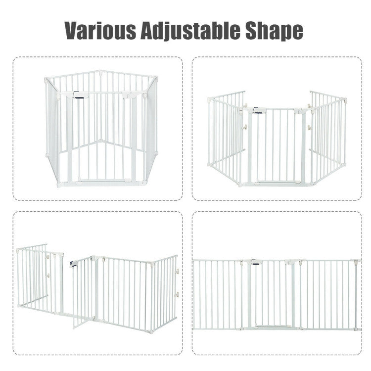 115 Inch Length 5 Panel Adjustable Wide Fireplace Fence-White