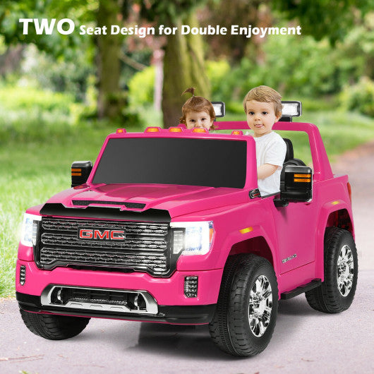 12V 2-Seater Licensed GMC Kids Ride On Truck RC Electric Car with Storage Box-Pink