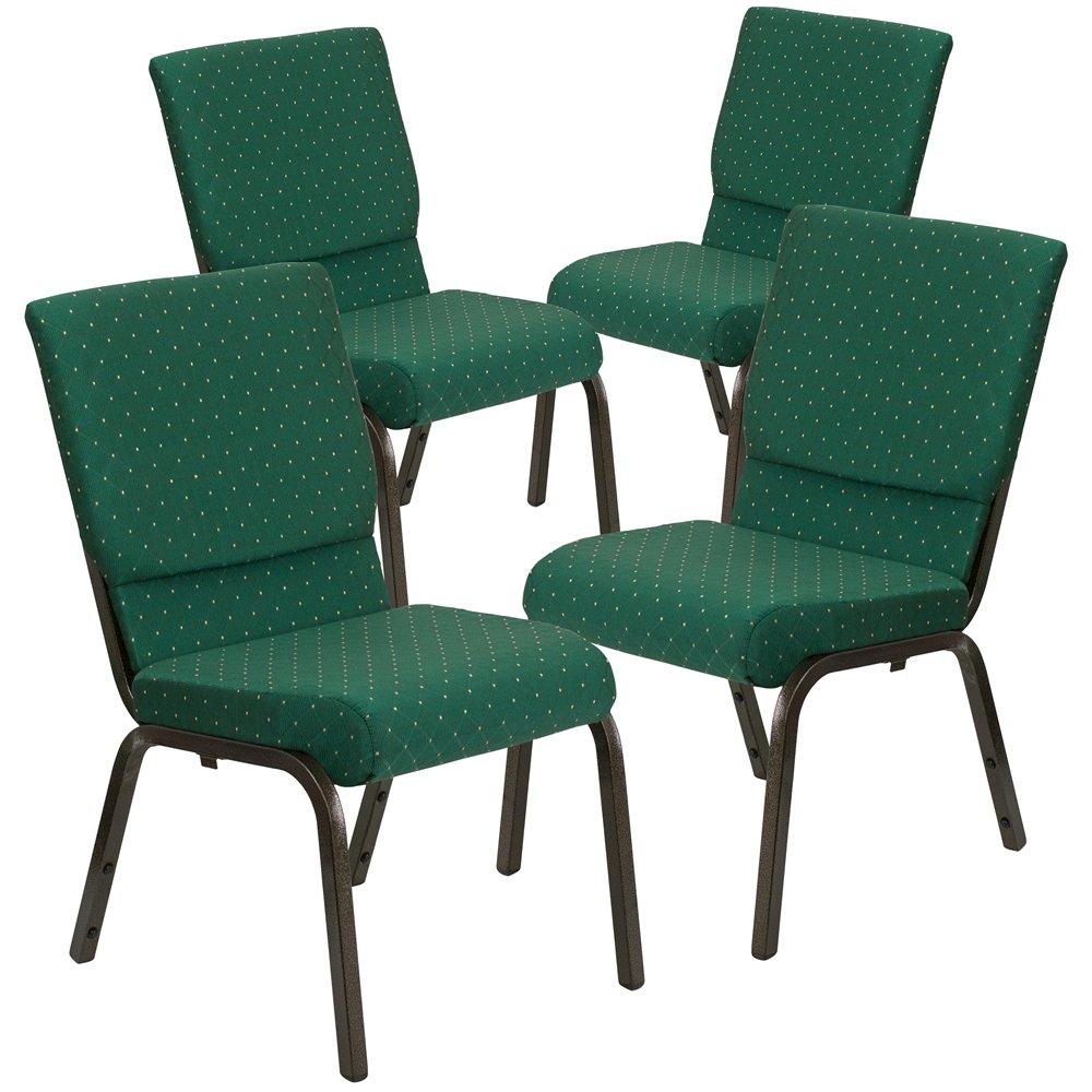 4 Pk. 18.5''W Green Patterned Fabric Stacking Church Chair - Gold Vein Frame