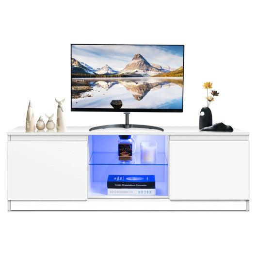 50" TV Stand Cabinet with LED Shelves Modern-White