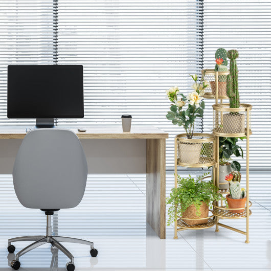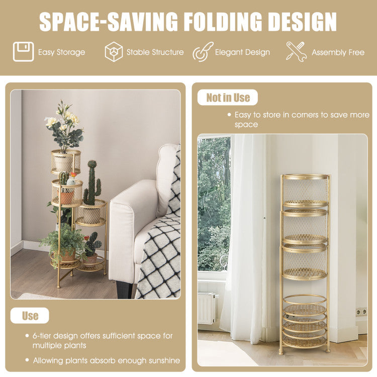 6-Tier Metal Plant Stand with Folding Rotatable Frame for Balcony Garden-Golden