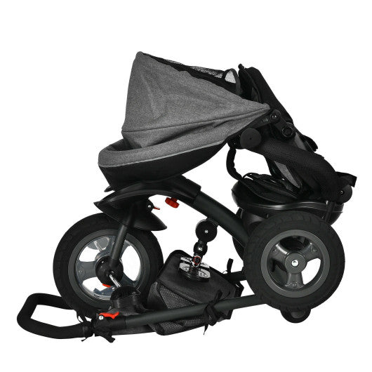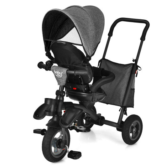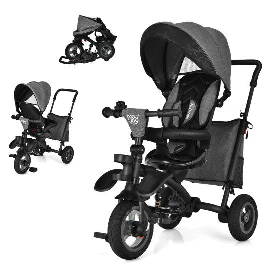 7-In-1 Baby Folding Tricycle Stroller with Rotatable Seat-Gray