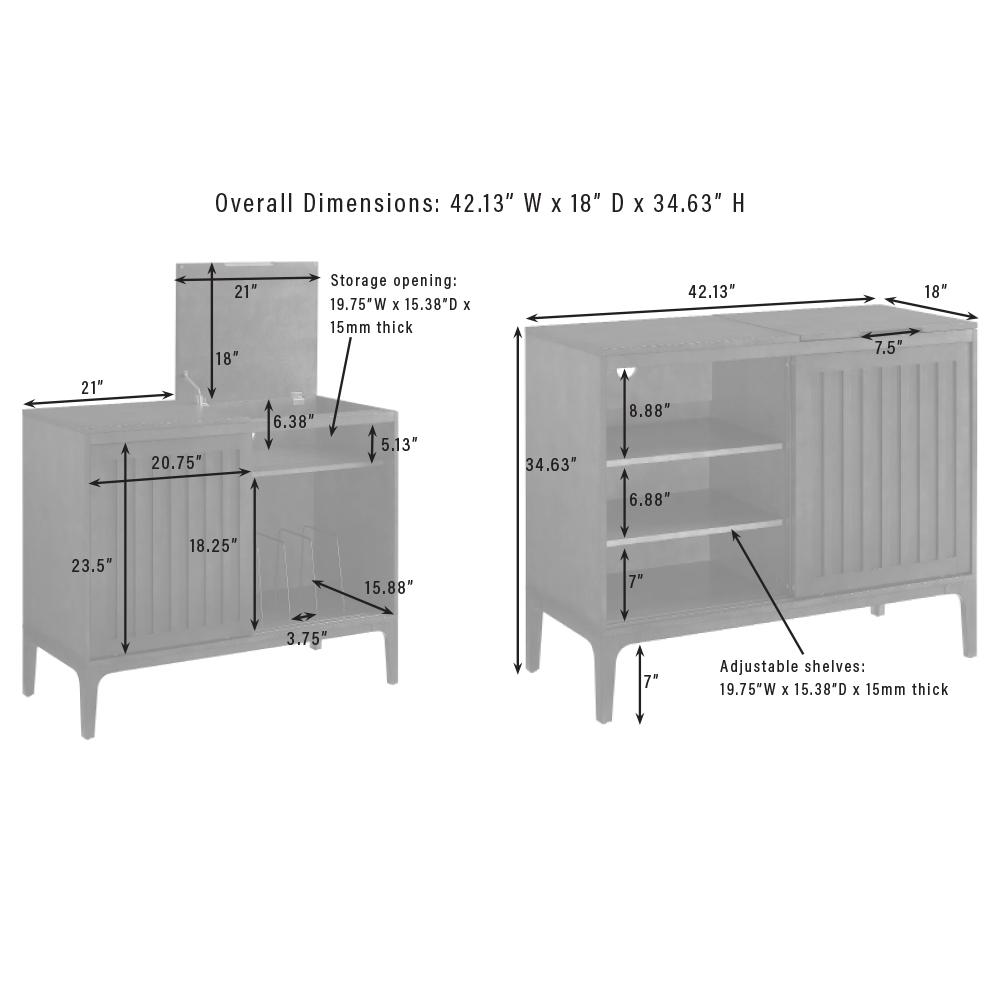 Get in the groove with the Asher Record Storage Media Console. This modern console features a sleek profile and sliding doors with a slatted look. Whether you need a home for your favorite turntable and records or a stylish accent cabinet, this record stand fits the bill. With sliding cabinet doors that open to adjustable shelving on one side, and vinyl storage on the other, this media console is a perfect addition to your home.