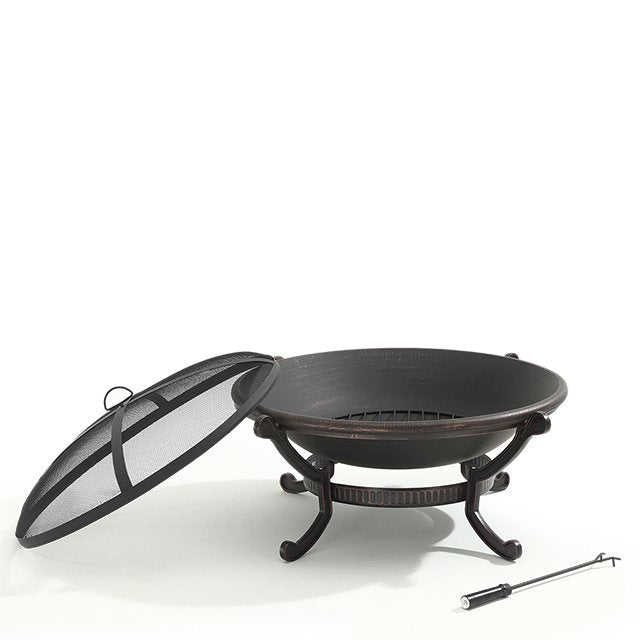 Cozy up around the open flames of the Ashland Firepit. The durable weather-resistant steel construction and large 35" fire bowl offer longer, warmer fires for relaxing on a cool evening. Keep sparks to a minimum with the protective mesh guard, while keeping your fire stoked with the steel fire poker that doubles as a screen lift. Sure to be a focal point for your next outdoor event, the Ashland Firepit is as stylish as it is functional.