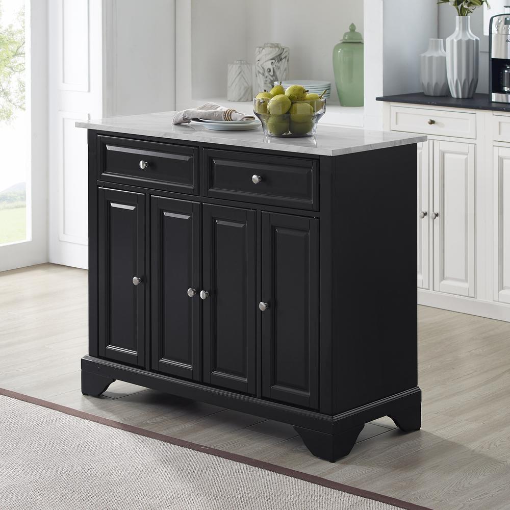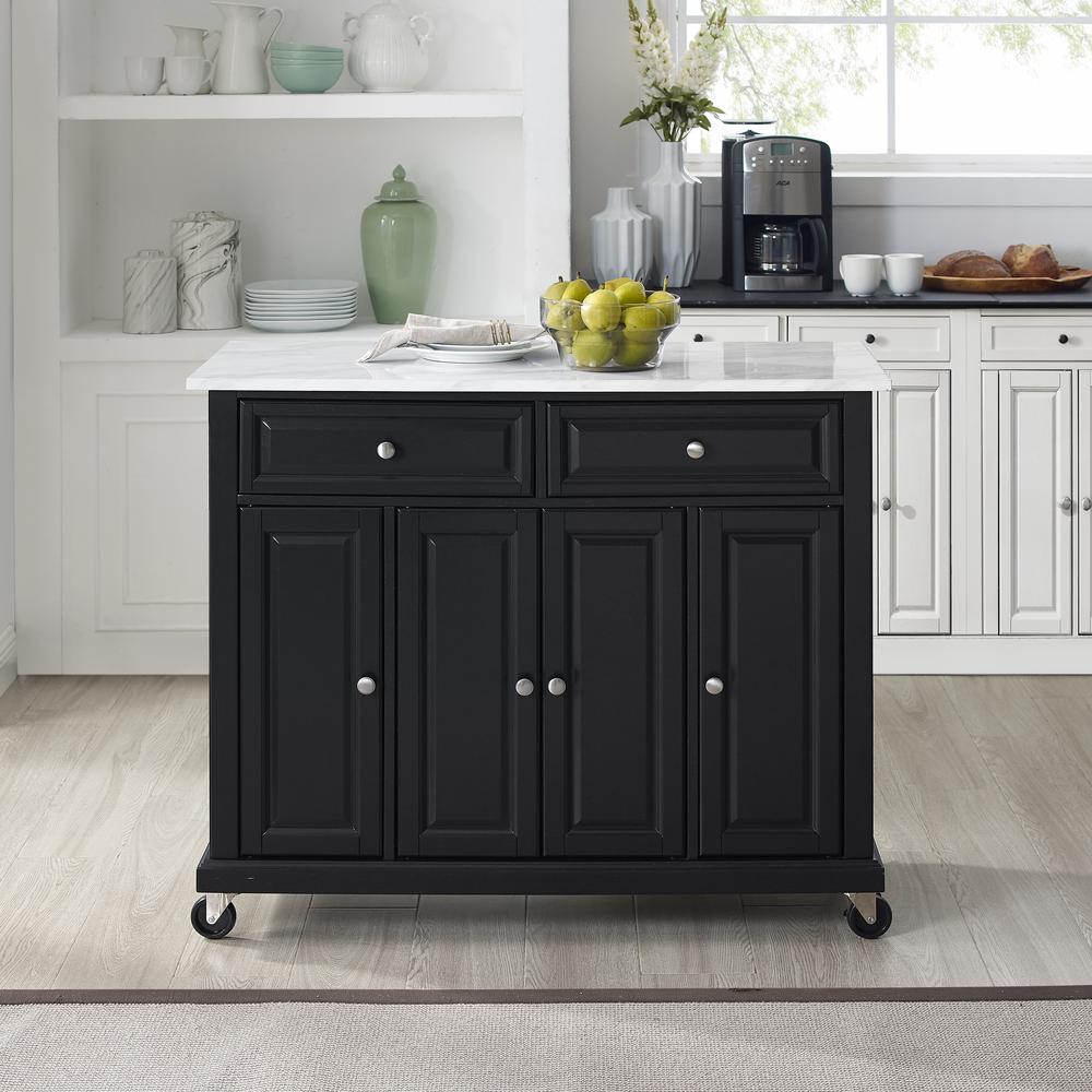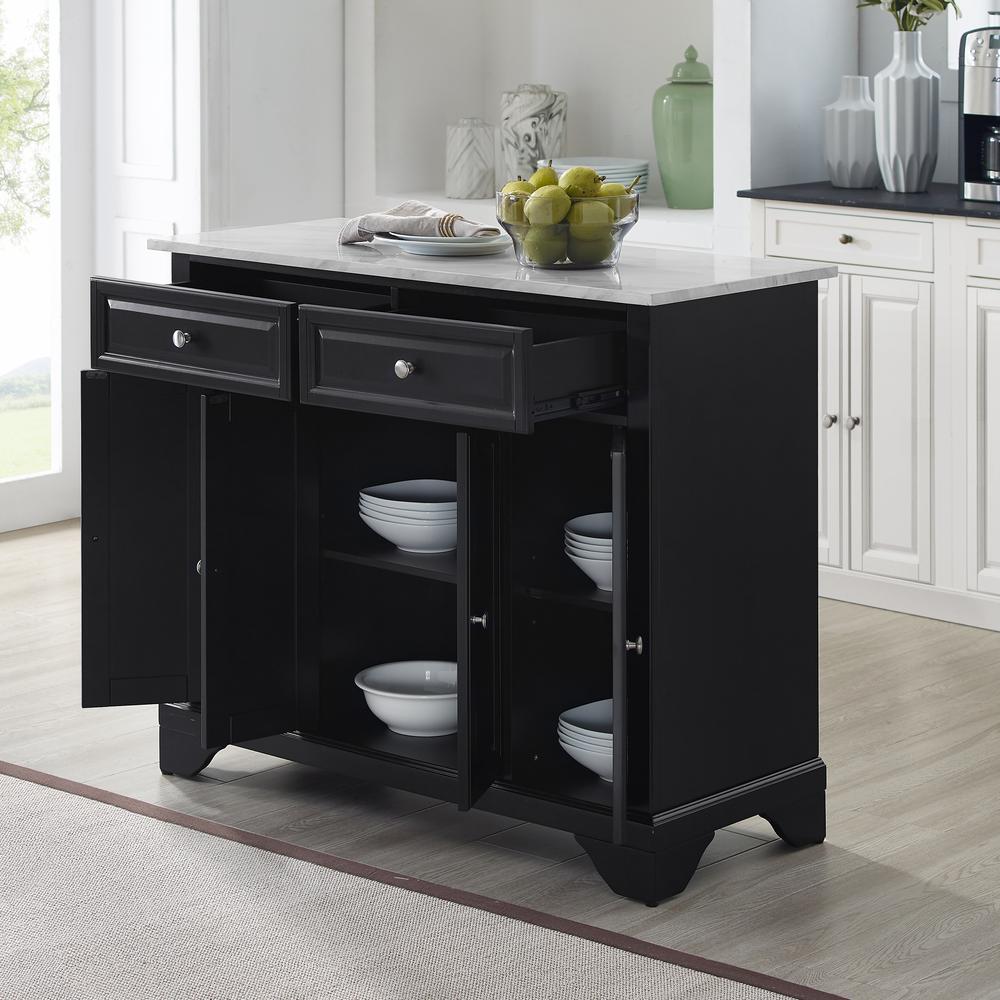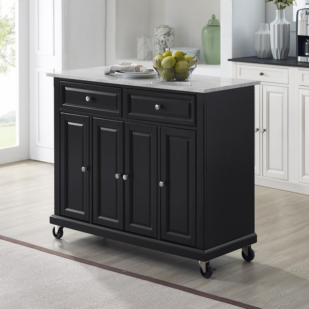 Avery Kitchen Island/Cart Distressed Black/ White Marble
