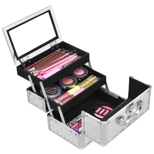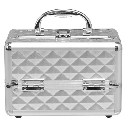 Beauty Cosmetic Makeup Case with Mirror & Extendable Trays-Silver