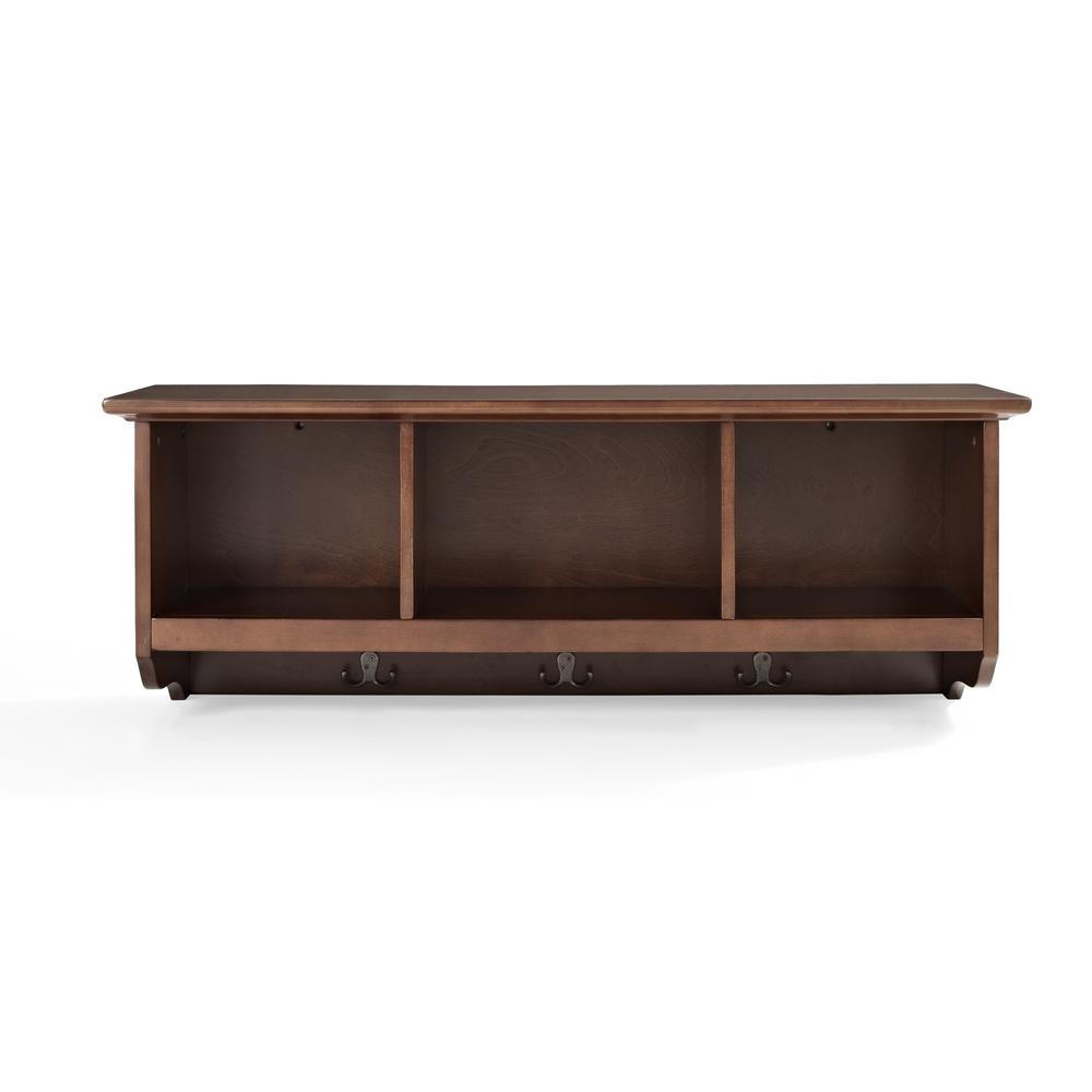 The Brennan Storage Shelf brings sophistication and function to your entryway. Featuring three open shelves for storing smaller items like hats, keys, and wallets, this shelf will be your first stop in the evening and last stop as you leave each morning. Three double prong hooks are perfect for hanging a family of coats and jackets. Add stylish organization to a foyer or mudroom with the Brennan Storage Shelf.