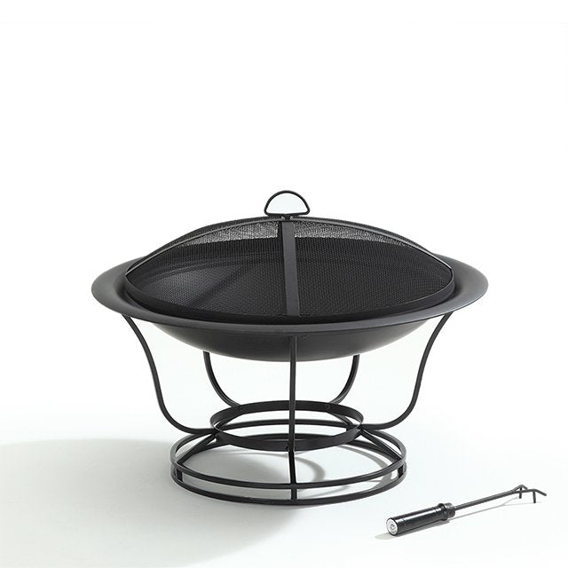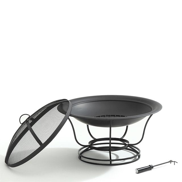 Create a relaxing retreat around the warmth of the Buckner Firepit. You'll enjoy hours of fireside fun with this firepit's durable, weather-resistant steel construction and 30" fire bowl. The wide base adds stability while the mesh cover and fire poker keep the flames stoked and the sparks to a minimum. With a simple and elegant design, the Buckner firepit adds an element of cozy to any outdoor seating set.