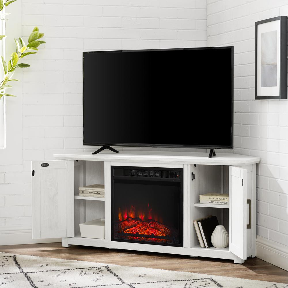 Camden 48" Corner Tv Stand W/Fireplace Whitewash