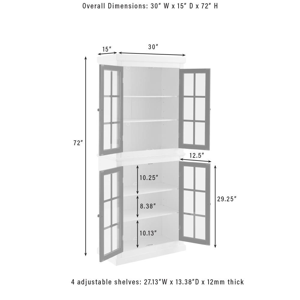 Make a statement with the Cecily Tall Storage Pantry. With a striking two-tone color palette, the pantry's classic windowpane doors offer a modern take on French country style. Comprised of two identical pantries connected with a sturdy metal plate, this stacked set offers ample storage without taking up valuable floor space. Each cabinet of the pantry features adjustable shelves that will accommodate everything from dishes to bath towels.