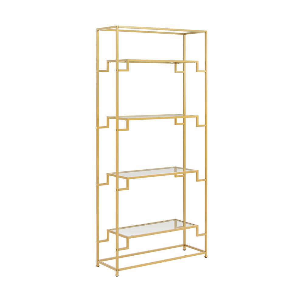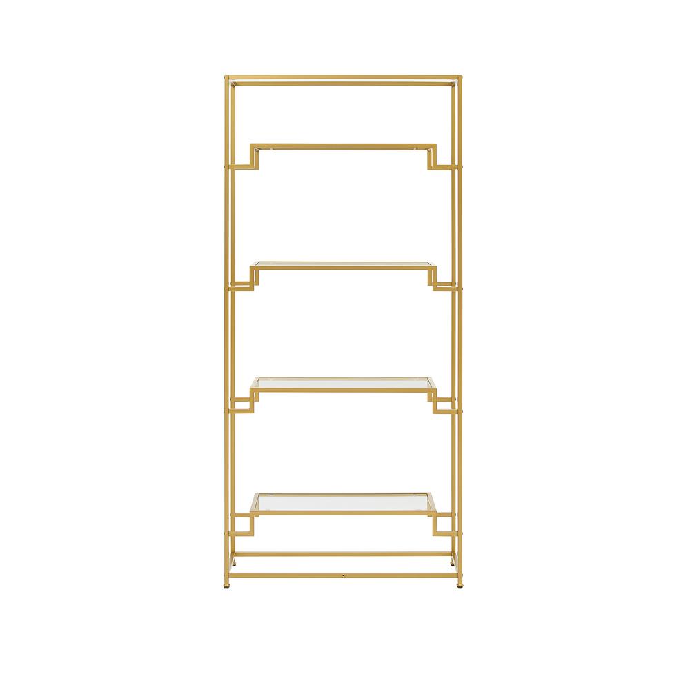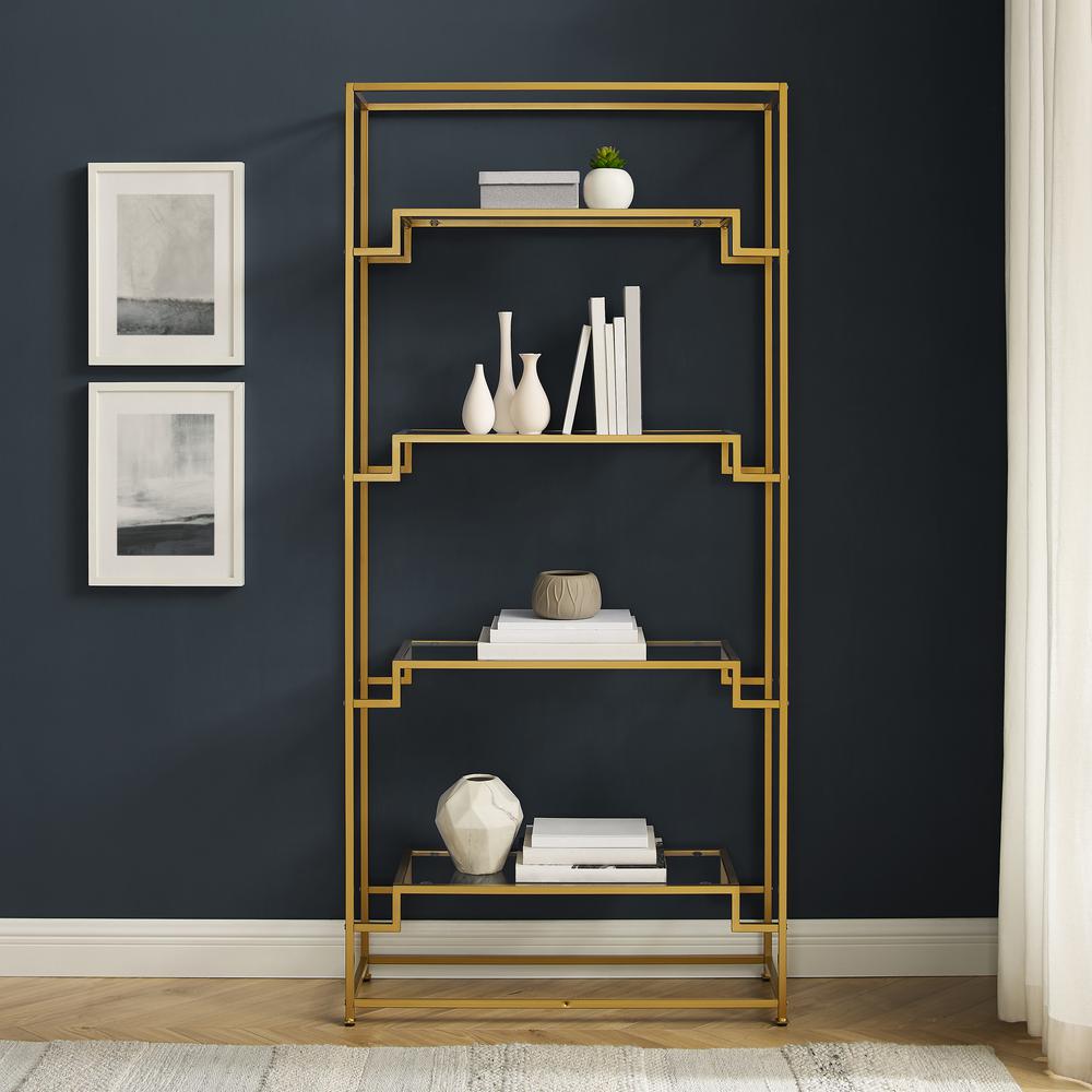 Sophisticated and stunning, the Celeste Etagere elevates everyday home organization. Made from sturdy steel, this beautiful bookcase features a sculptural frame built for displaying books, keepsakes, and dŽcor. The clear tempered glass shelves give the Celeste Etagere a sleek silhouette that doesnÕt overpower the room.