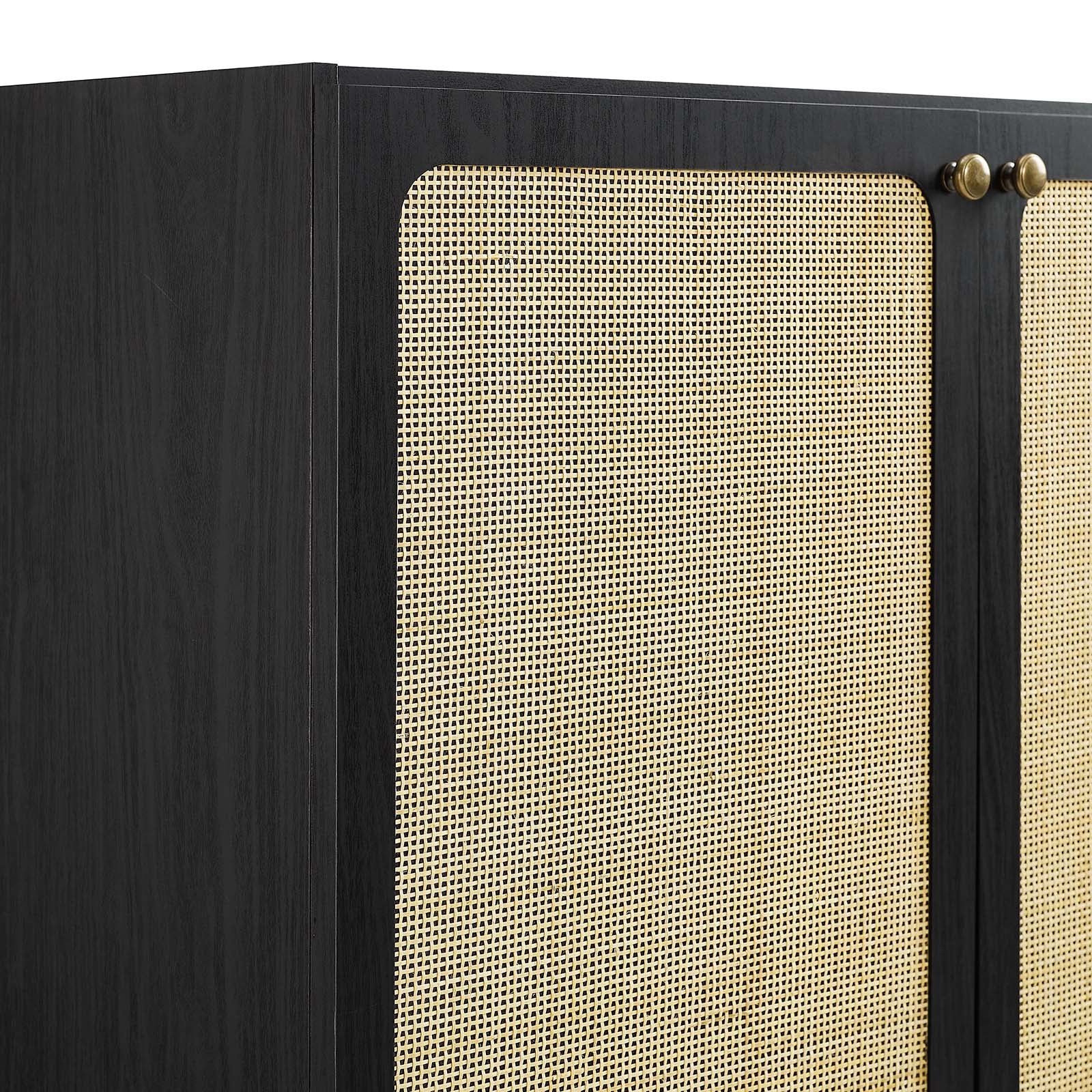Refresh your washroom with the textured detail of the Chaucer 36" Bathroom Vanity Cabinet. Featuring beautiful rattan weaving on its doors, this vanity cabinet instantly updates any bathroom or powder room. A spacious adjustable top shelf and a fixed bottom shelf hidden behind its hinged doors offers ample storage space for toiletries, towels, and other bathroom essentials. Enriched by stylish round metal cabinet knobs and resting on sleek legs with adjustable feet for added stability, this bathroom cabinet is durably crafted with MDF, particleboard, and wood grain laminate to bring natural organic aesthetics to your decor. Assembly required. Fixtures and sink basin not included. Top Shelf Weight Capacity: 48 lbs. Bottom Shelf Weight Capacity: 99 lbs. Set Includes: One - Chaucer 36"Bathroom Vanity Cabinet (Sink Basin Not Included)