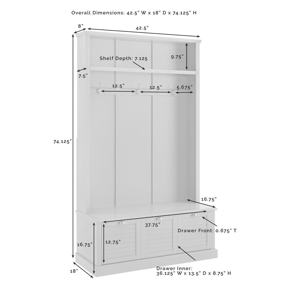 Keep your homeÕs entryway tidy and organized with the classic Ellison Hall Tree. Featuring louvered accents on the bottom drawer and raised paneling on the back, this hall tree makes any mudroom look good. Combining the convenience of a coat rack and shoe rack, this piece offers three double-pronged hooks and an entryway bench with a pull-out storage drawer. A display shelf at the top of the coat tree is perfect for smaller items like keys and sunglasses. Whether you're coming or going, the Ellison Hall Tree will keep all your everyday items close at hand.