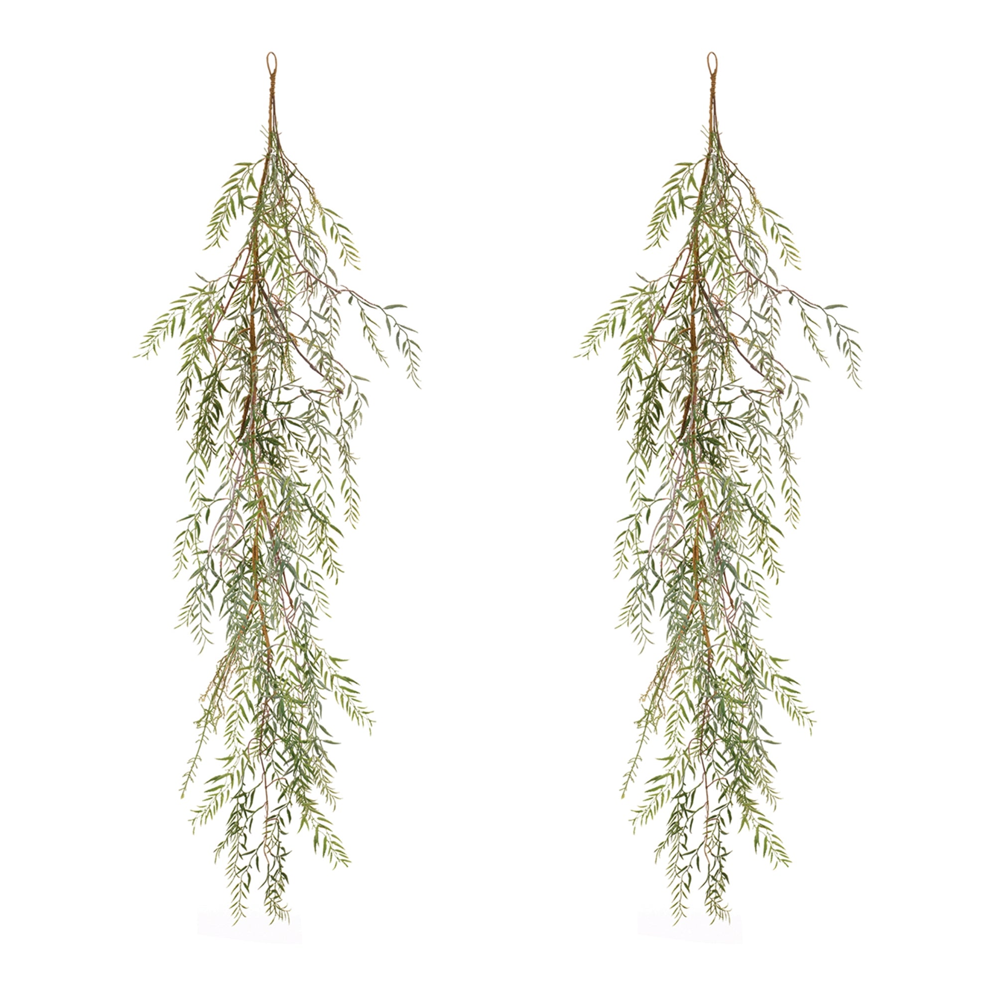 Get ready to decorate your home with a set of Foliage Twig Garlands! Featuring natural green and brown tones and twig accents, this set is sure to fit right in with your home decor. The quality plastic compsosition is sure to endure for seasons to come. Adorn your entryway or staircase banister with this lovely accent, or weave the pieces into a floral wreath to accent the piece. , Foliage Vine (Set of 2) 68"L Plastic