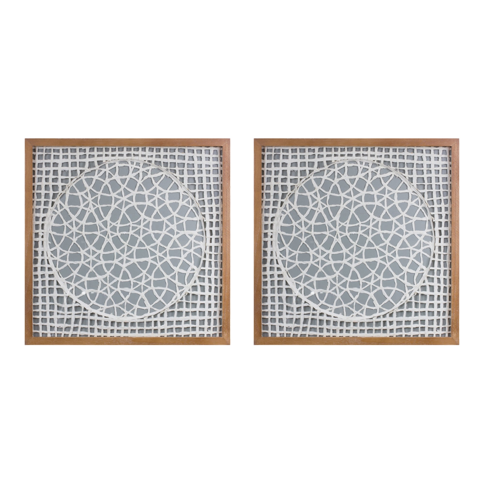 Get the modern, contemporary look you've been wanting with Paper Mache Wall Art. Our paper mache artwork is made with neutral white and grey tones, making it the perfect addition to any home or office. The natural wood frame complements the paper composition, creating a unique and eye-catching piece of art. Bring your walls to life with our Paper Mache Wall Art!, Wall Art (Set of 2) 19.5"SQ Wood/Paper
