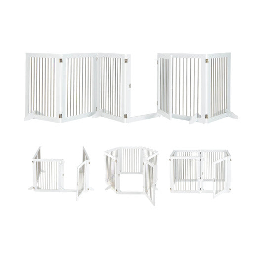 Freestanding 6-Panel Dog Gate with 4 Support Feet for Stairs-White