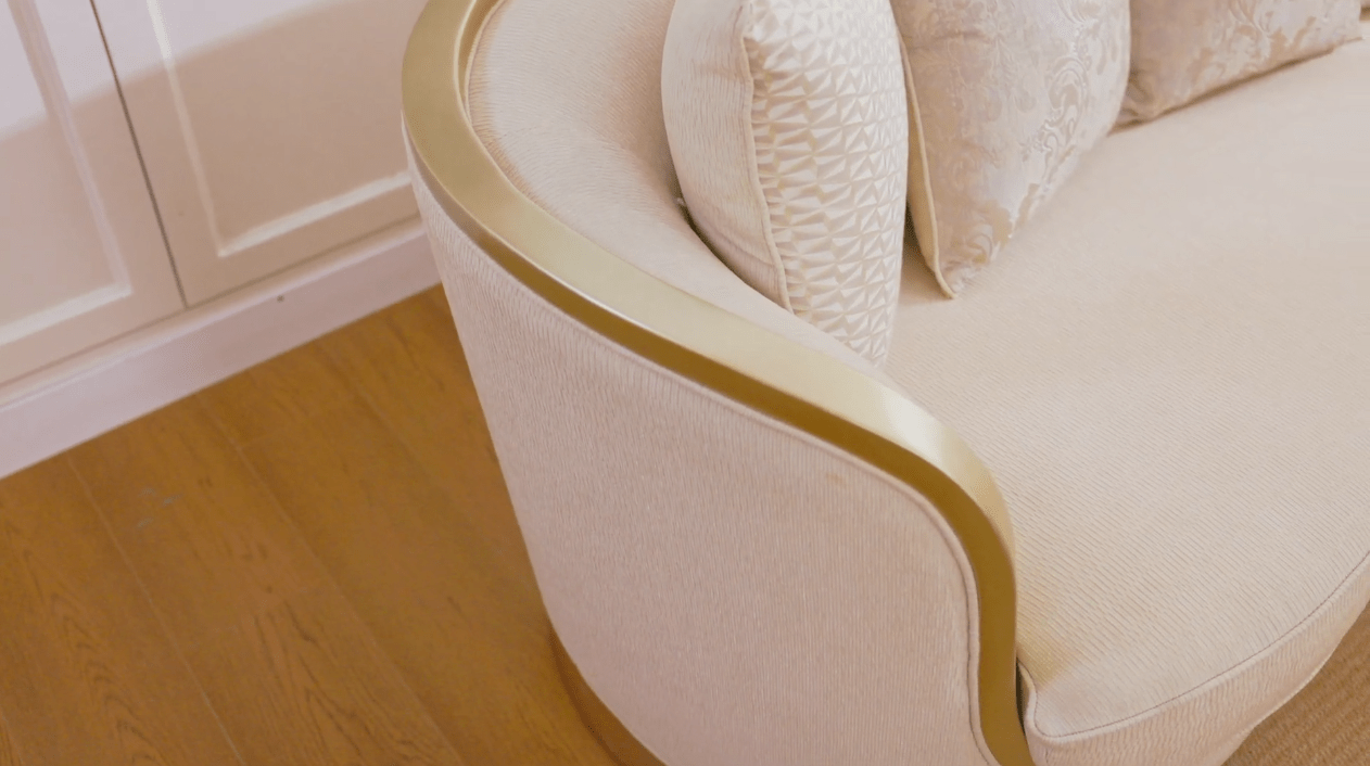 The HD-7006 3PC Sofa Set transforms living spaces with its elegant blend of contemporary flair and timeless sophistication. This luxurious set includes a sofa, loveseat, and chair upholstered in high-quality beige fabric and accented with a sleek metallic gold frame. Gently curved silhouettes and plush, neutral cushions offer both comfort and refinement, making it ideal for formal and casual settings. Balancing elegance and practicality, the HD-7006 3PC Sofa Set is a statement piece that enhances any home’s décor. 3pc Set Includes: 1 Sofa, 1 Loveseat, 1 Chair