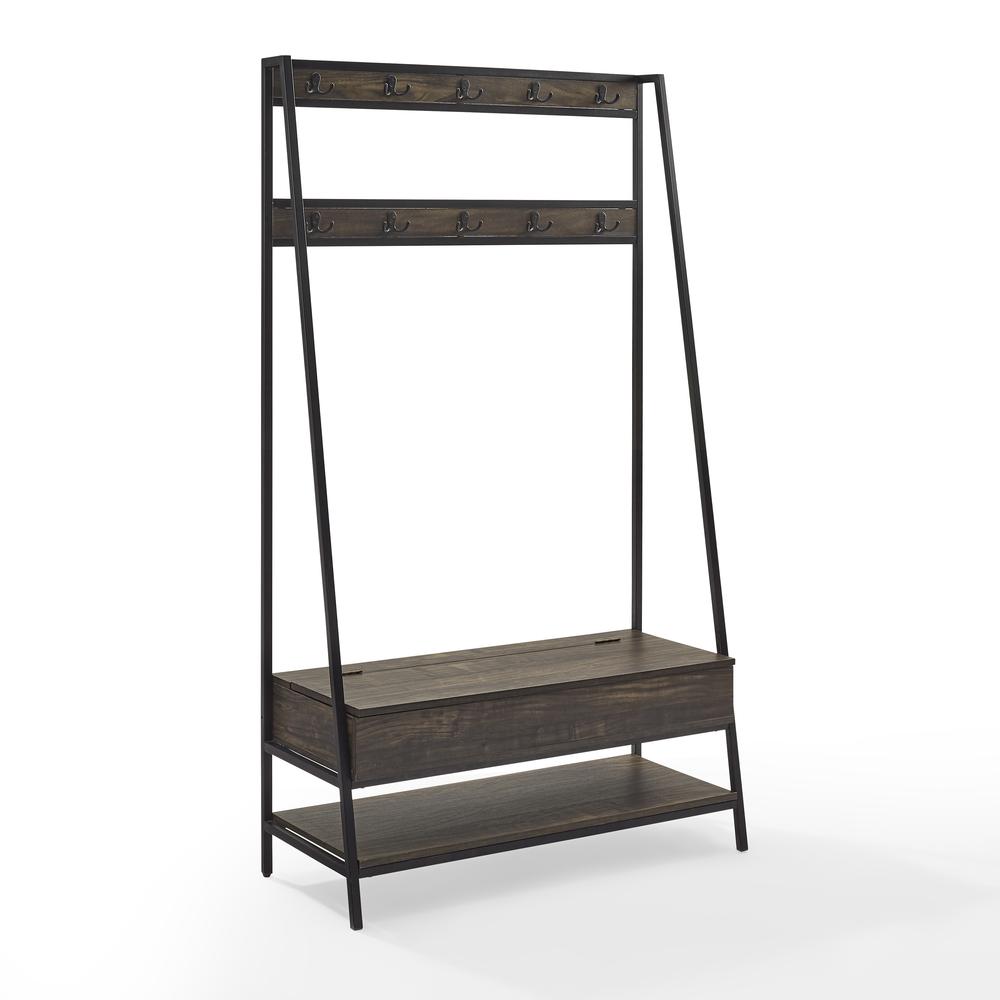 Need a coat rack? Need an entryway bench? Need a shoe rack? Look no further than the Jacobsen Hall Tree. Created with elements of industrial style, this wood and metal hall tree offers 10 double prong hooks for hanging coats and book bags plus a lower storage shelf perfect for storing shoes. Ensuring a clutter-free mudroom, this hall tree also has a built-in storage bench with a hinged lift-up top ideal for smaller items like gloves and sunglasses. Streamlined with a modern edge, the Jacobsen Hall Tree will keep you organized without overcrowding your foyer or hallway.