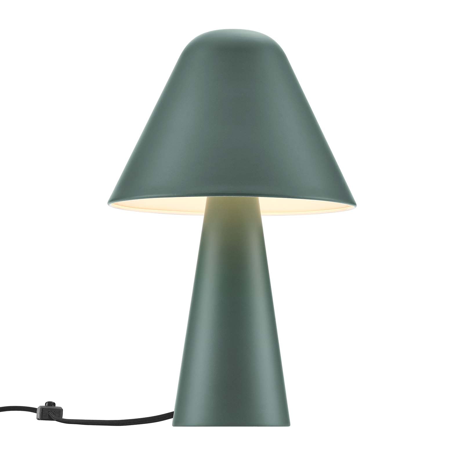 Infusing spaces with a retro elegance, the Jovial Mushroom Table Lamp is the perfect addition to chic and stylish interiors. The mushroom-shaped metal shade swivels to provide focused lighting ideal for tasks such as reading and emanates a gentle glow for evening ambiance. Ensuring attention to every detail, Jovial's interior flaunts a white matte finish, while its base is thoughtfully designed with a black felt pad for stability. This table lamp is a versatile choice for bedroom nightstands, home office desks, living room accent tables, or cozy reading nooks. This side table lamp features a sleek black fabric cord with a standard US plug and an easy-to-access on/off switch. Requires 1 E26 bulb, 40W max, or LED equivalent (not included). ETL Listed and Approved. Assembly Required. Clean with a soft, damp cloth. Set Includes: One - Table Lamp