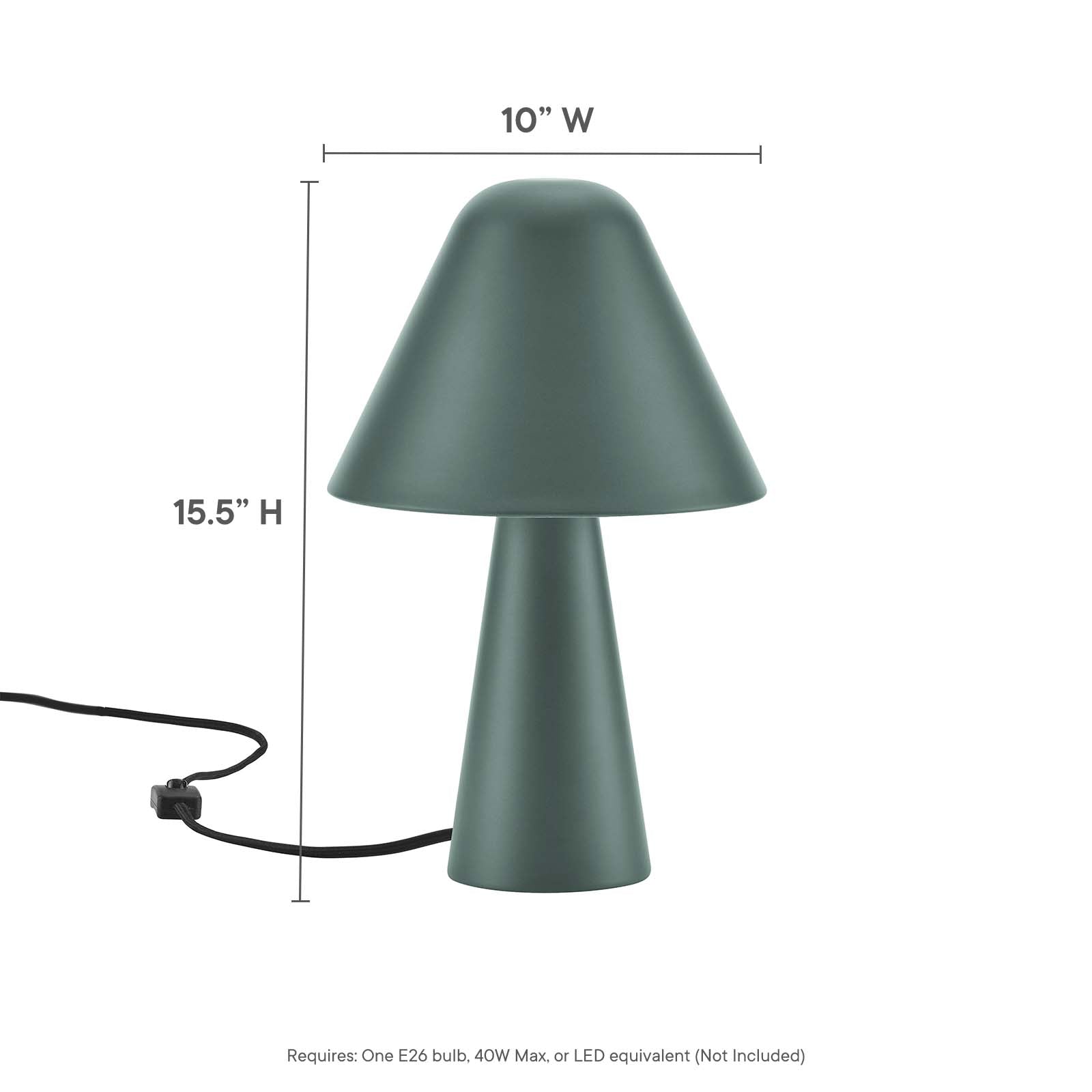 • Bullets: Metal Table Lamp Metal Mushroom Swivel Shade Black Fabric Cord On/Off Switch Requires 1 E26 40W Max Bulb (Not Included) ETL Listed and Approved Assembly Required