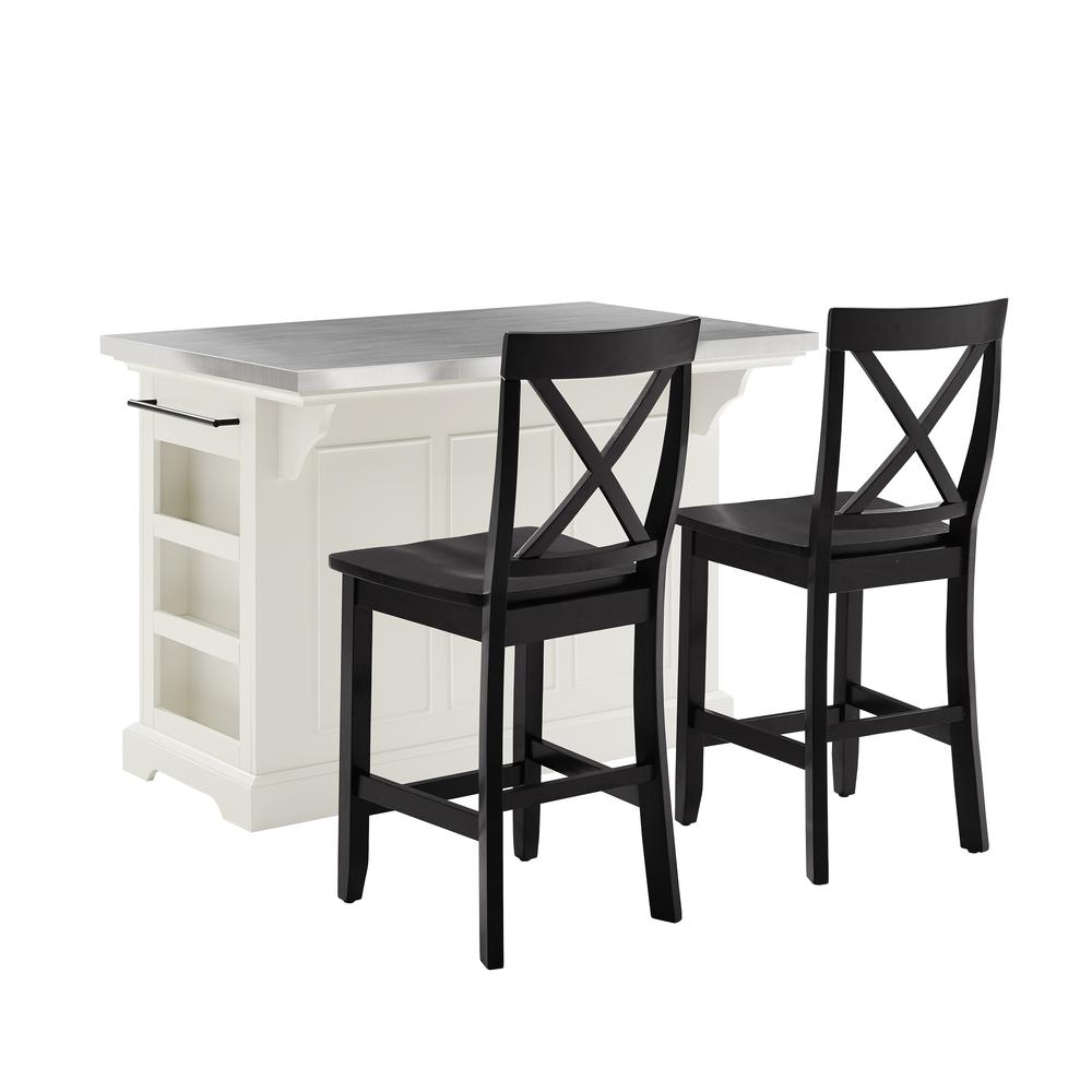 Julia Stainless Steel Top Island W/X-Back Stools White/Black - Island & 2 Stools
