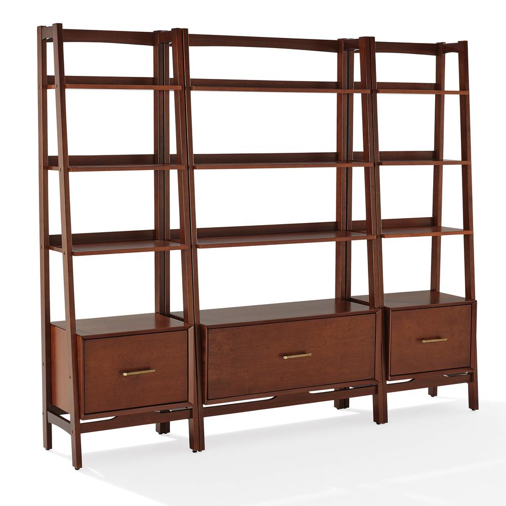 Taking cues from mid-century modern design, the Landon 3pc Etagere Set features a sturdy wood frame and a total of nine open shelves. Three spacious office style drawers feature full-extension glides and optional hanging rails, for use as a file cabinet or to tuck away larger supplies. Ideal for books and other decor, the Landon 3 Piece ƒtag�re Set delivers a classic storage solution with a modern flair.