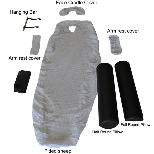 Featured with the round and semi-circle bolster the 3 fold massage table offers a sound and durable support during the massage. Practical and functional this massage table works just like ones at professional therapy clinics and massage centers ideal for professional therapists therapy students and home users alike. The massage table is precision-crafted with hardwoods and features a full 3 fold of high-density luxury padding to ensure a more comfortable massage experience. Covered with soft fabric sheets the massage table not only guarantees a comfortable touch to whomever lying on it but also for a long term use. With a set of accessories including fitted sheet headrest and armrest covers and towel hanger it is absorbent and shaped to fit perfectly not only for your body but also for your multiple needs. Don't hesitate to buy it. Brand new and good quality. Massage table 2" thick 3 fold foam padding with hardwood construction Has no tilt back feature like other 3 fold massage table Ultra soft fabric cover Double knob leg adjustments Multi-adjustable face cradle Accessory pack included Set of 8 massage table accessories Part 1: 1 pcs of fitted sheet 3 pcs of disposable headrest and armrest covers Protect your headrest cushion and keep your massage table sanitary Protect your massage table from face oils makeup lotion and other residue Soft to touch absorbent and shaped to fit perfectly Material: Medical-grade fiber hypo-allergenic Part 2: 1pcs round bolster & 1 pcs semi-circle bolster Give a soft and comfortable support for neck or legs during massage Use it under the knees or ankles to relieve lower back stress Part 3: 1 pcs towel hanger and 1 pcs pouch Convenient to hang towel on the bar and put other cosmetic bottles in it