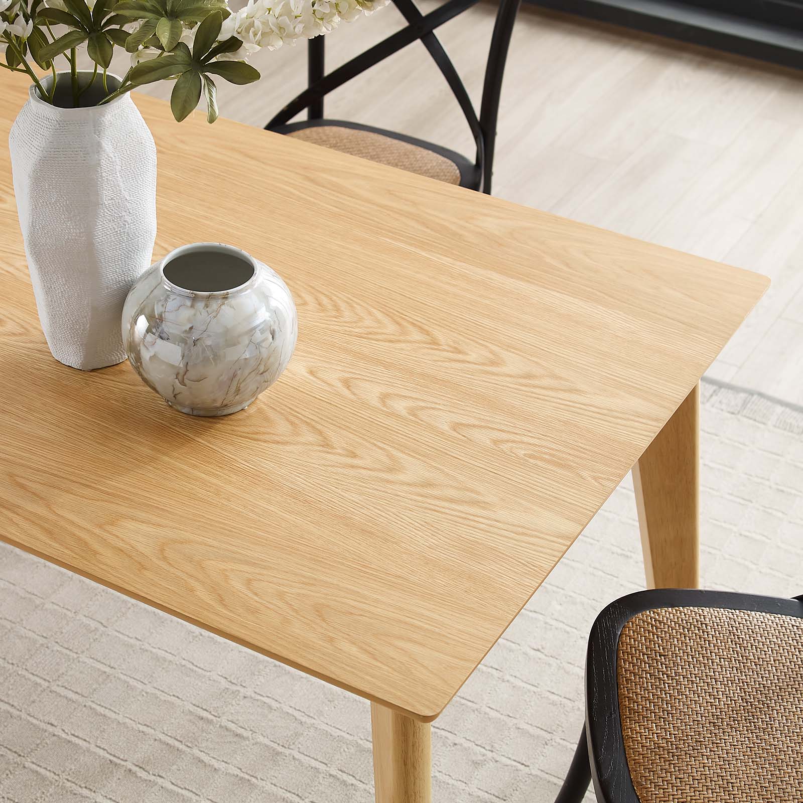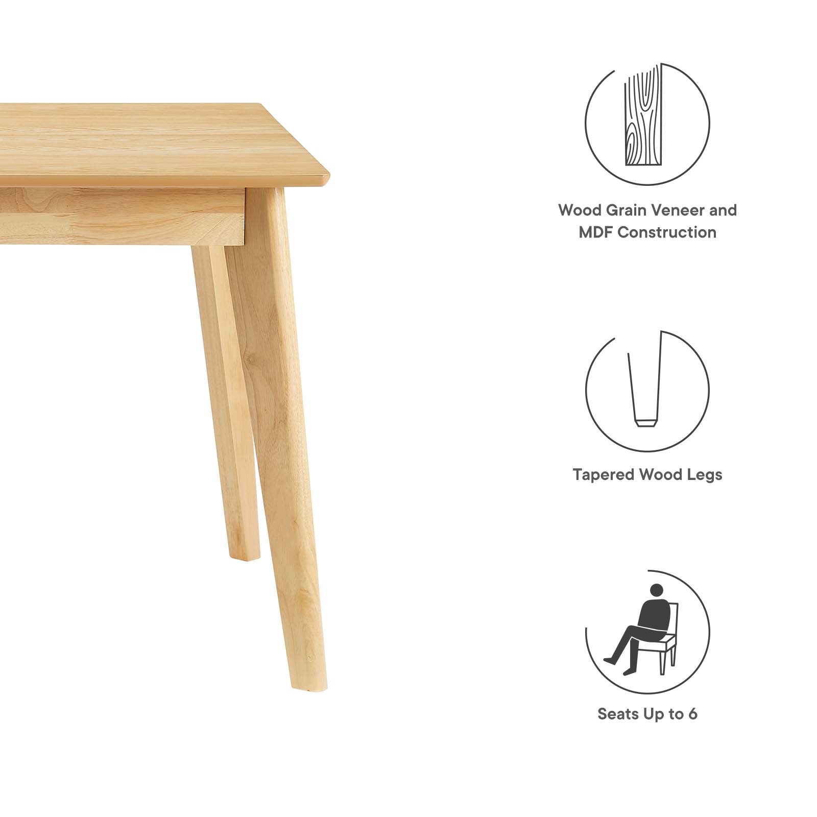 Explore new vistas with the Oracle 59" Rectangle Dining Room Table. Sturdily constructed from wood veneer and MDF with four tapered wood legs, this dining table possesses a sleek mid-century modern style. The simplicity and quietude of the Oracle Dining Table create the ability to effortlessly enhance any dining room, kitchen, breakfast nook, or dining area decor. Seats up to 6 people. Assembly Required. Set Includes: One - Oracle 59" Rectangle Dining Table