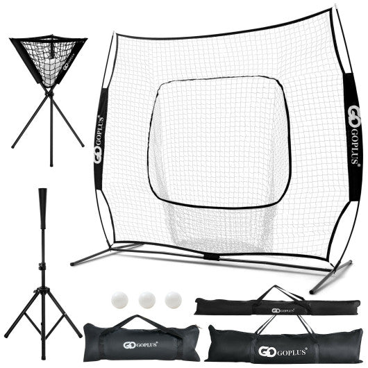 -Package includes: 1 x Baseball net 3 x PVC balls 1 x Ball caddy 1 x Batting tee 3 x Storage bags 1 x Instruction-Perfect for hitting fielding pitching and fielding-Extra 3 PVC balls are given in the package-Adjustable batting tee can be set from 29" to 43"-Large ball caddy contains 20 softballs or 20 baseballs-3 carrying bags for easy storage and transportation-Large mouth with durable net for easy training-Sturdy frame and metal stakes for high stability and durability-Suitable for all-age and all-height users to play