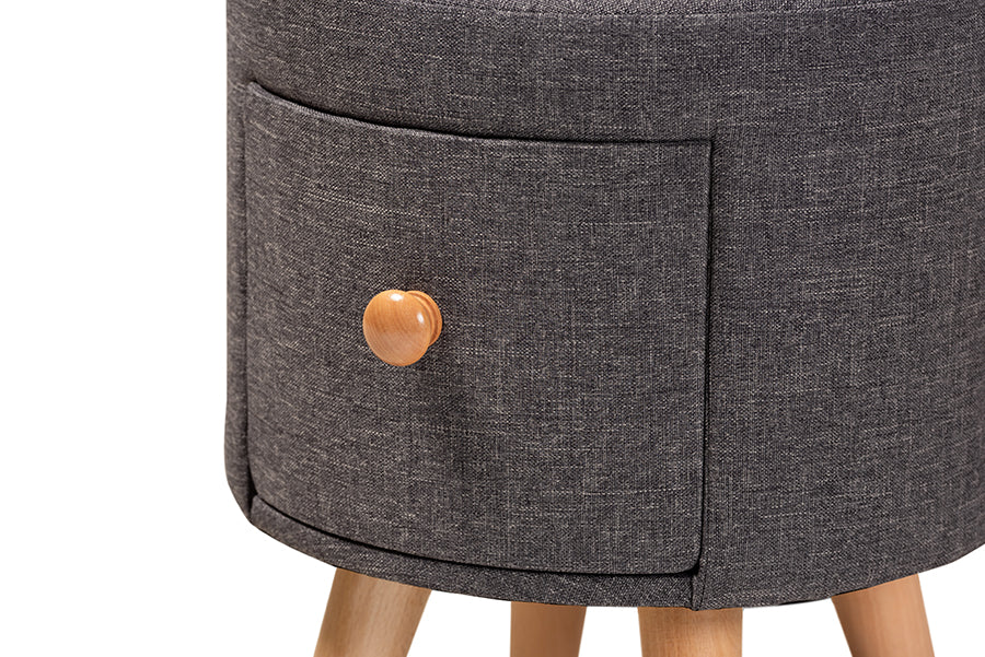 Baxton Studio Rocco Modern Transitional Dark Grey Fabric Upholstered and Oak Brown Finished Wood 1-Drawer Ottoman Stool