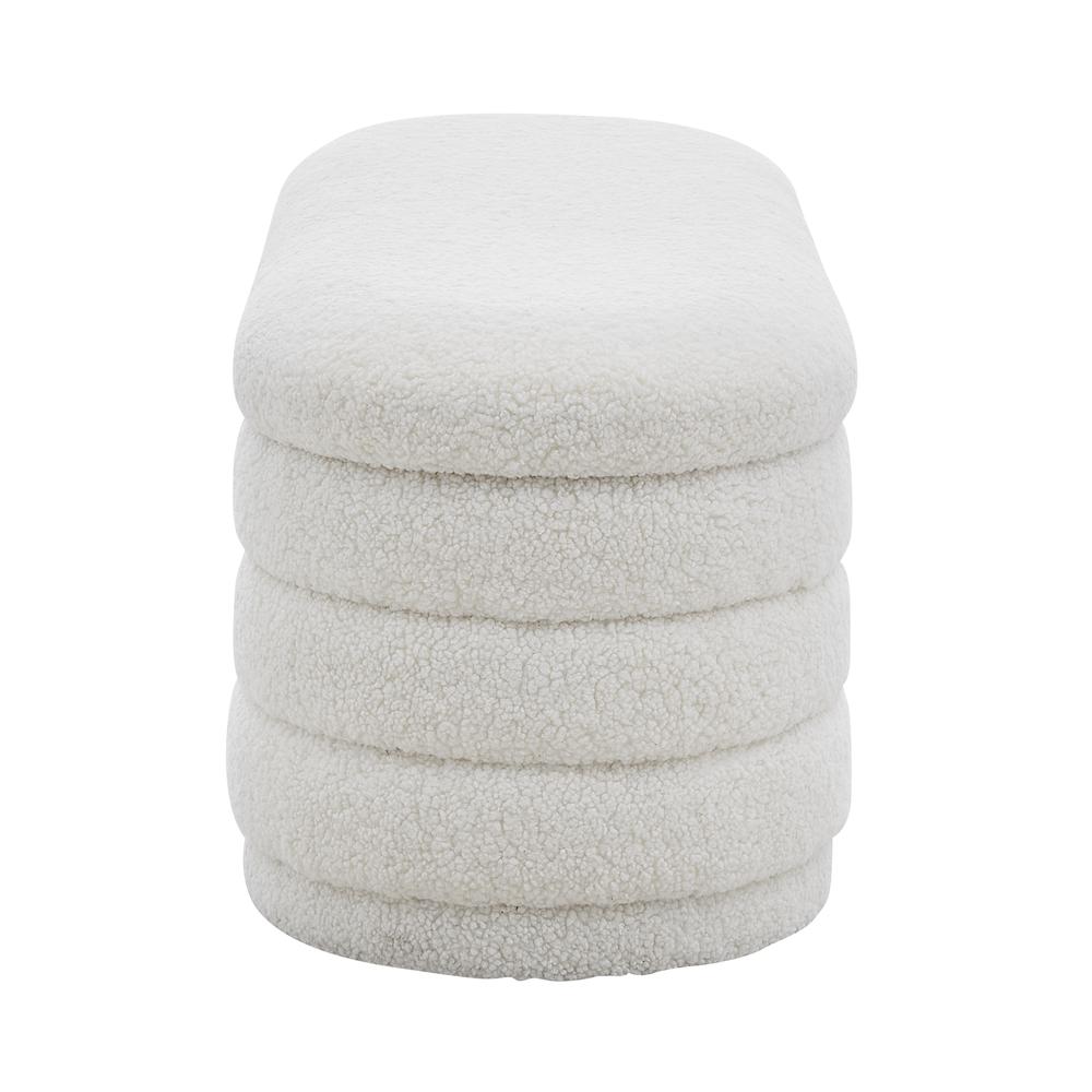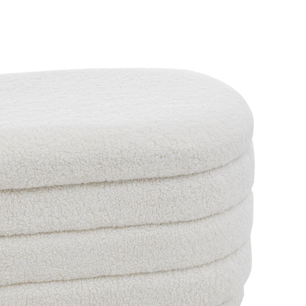 Providing Deco Chic style, the Celine oval bench is gorgeous in channel lines and faux shearling fabric. Lift the top to open up for a generous storage compartment. Fully assembled.