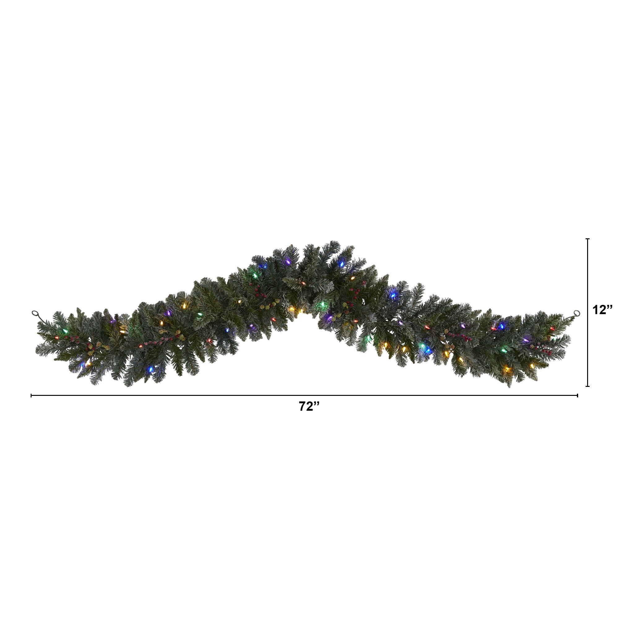 Nearly Natural 6' Flocked Artificial Christmas Garland with 50 Multicolored LED Lights and Berries