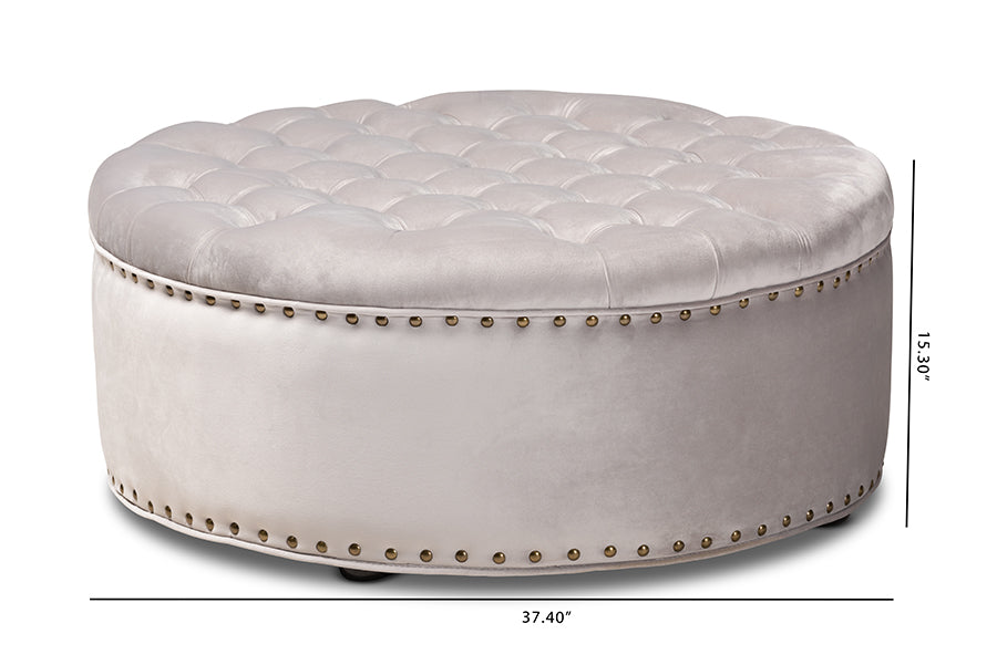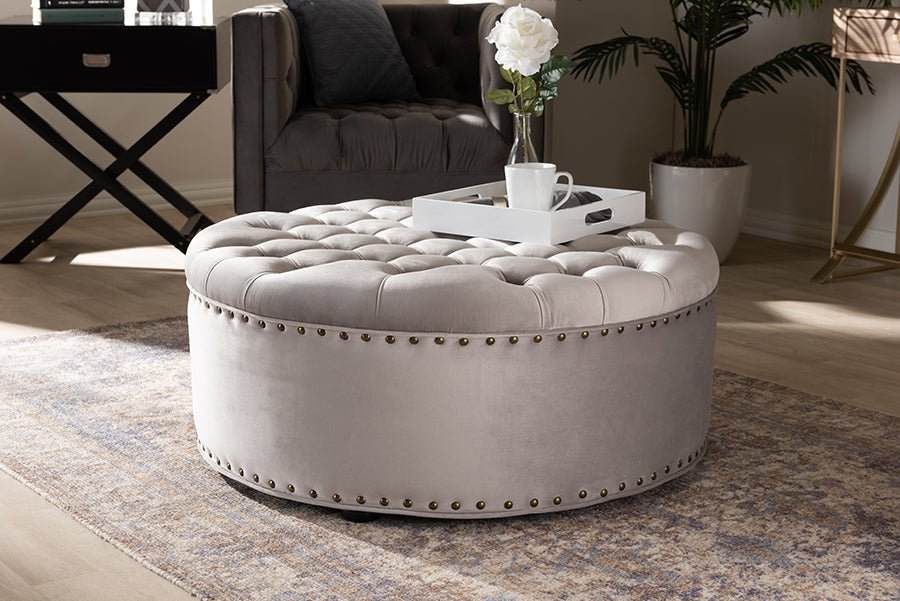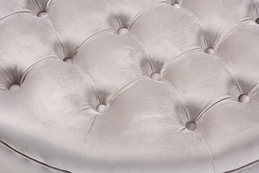 Baxton Studio Iglehart Modern and Contemporary Light Gray Velvet Fabric Upholstered Tufted Cocktail Ottoman