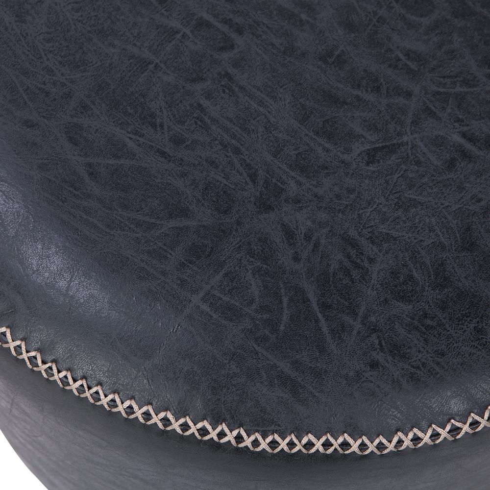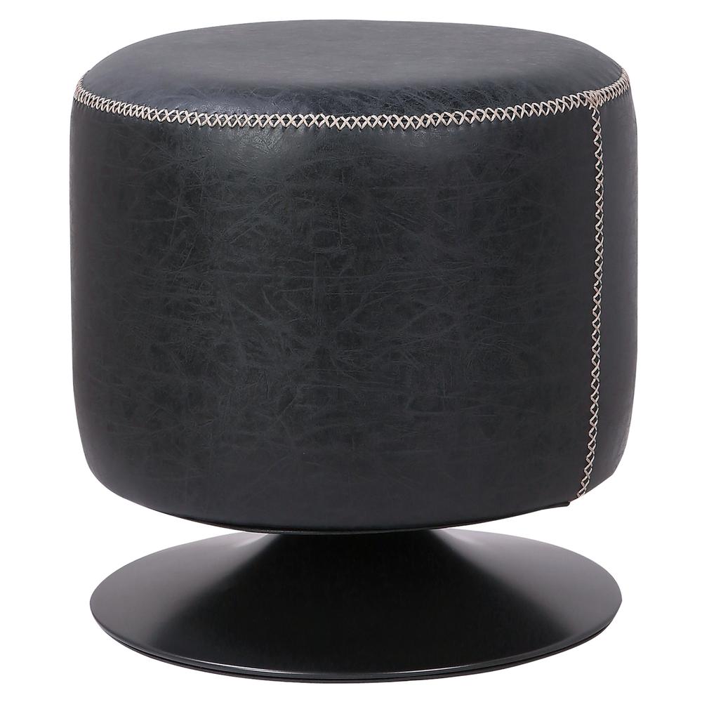 Our Modern Industrial-style ottoman is so much more than a just place to put up your feet. This compact, multipurpose piece is also the perfect spot to display a decorative tray or provide extra seating in a pinch. Designed with a Metallic Gray circular steel base with a 360-degree swivel, itÕs fully upholstered in a Vintage Black leather-like fabric that's accented with a charming X-stitch detail on the seams. Fully assembled. Also available in Vintage Coffee Brown color.