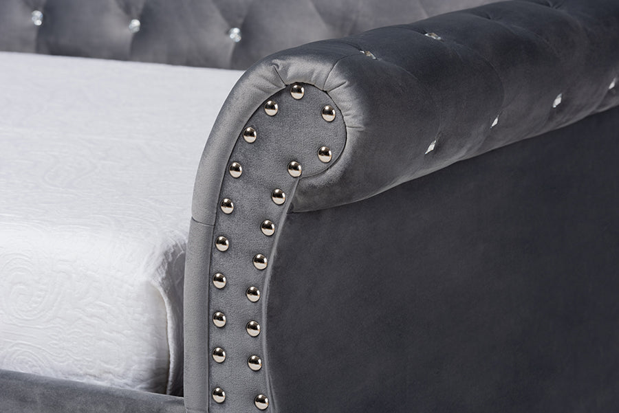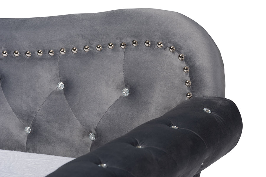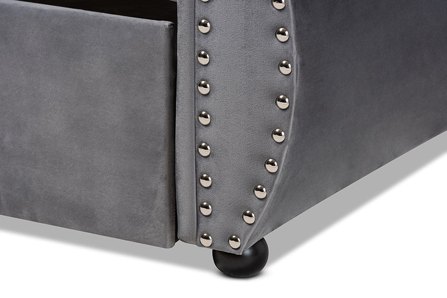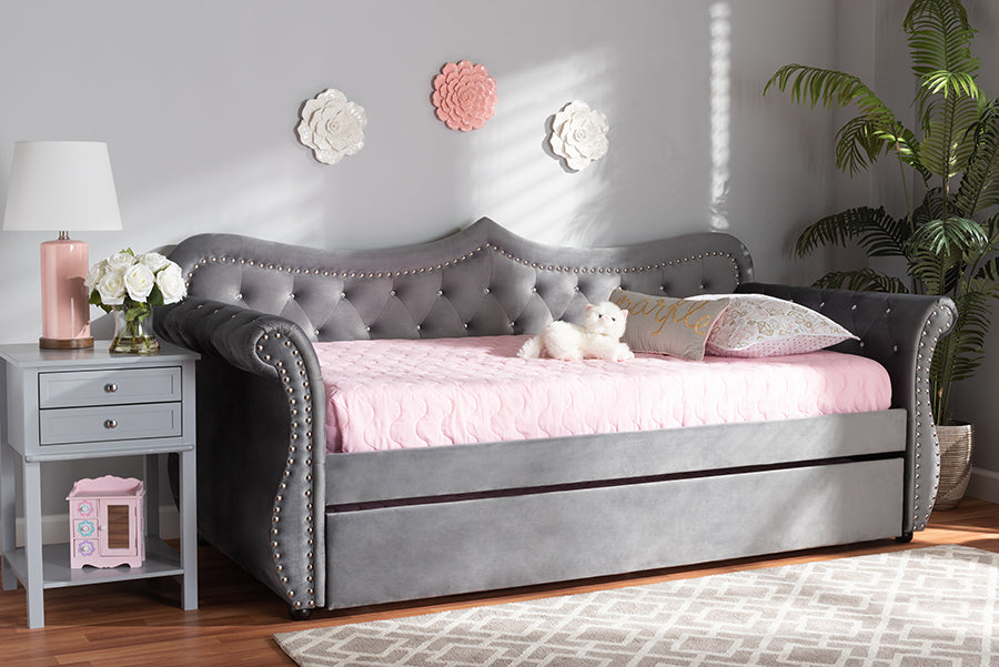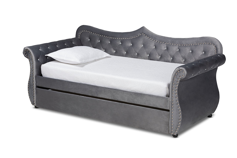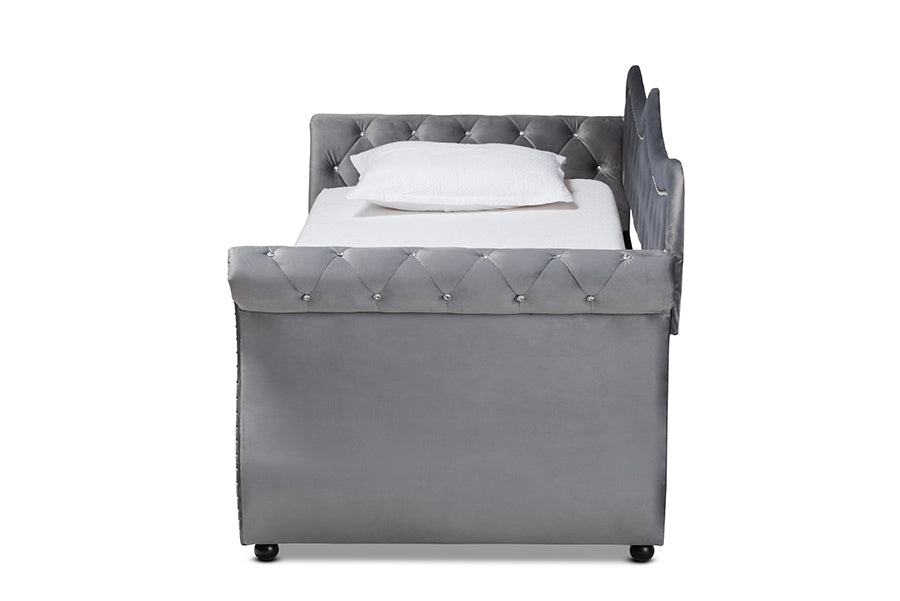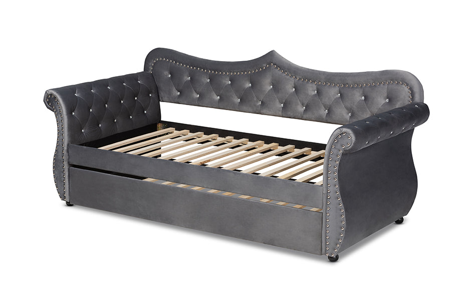 Baxton Studio Abbie Traditional and Transitional Grey Velvet Fabric Upholstered and Crystal Tufted Twin Size Daybed with Trundle