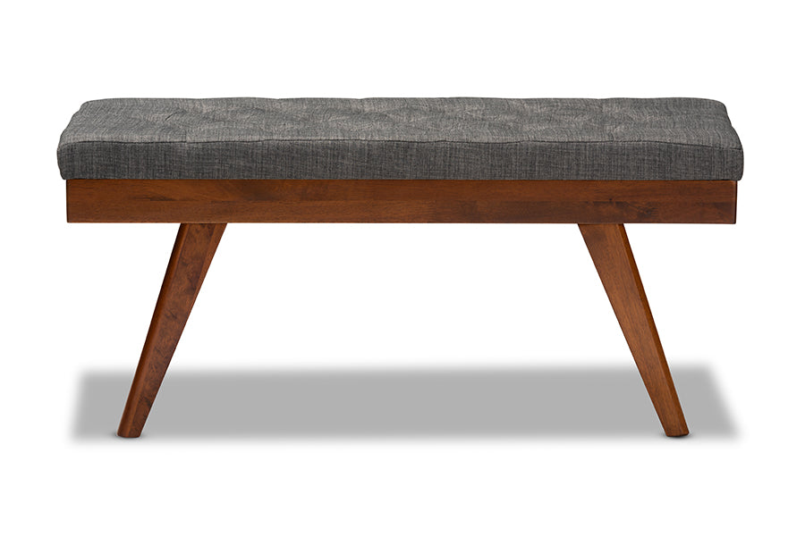 Baxton Studio Alona Mid-Century Modern Medium Grey Fabric Upholstered Wood Dining Bench
