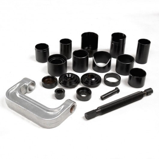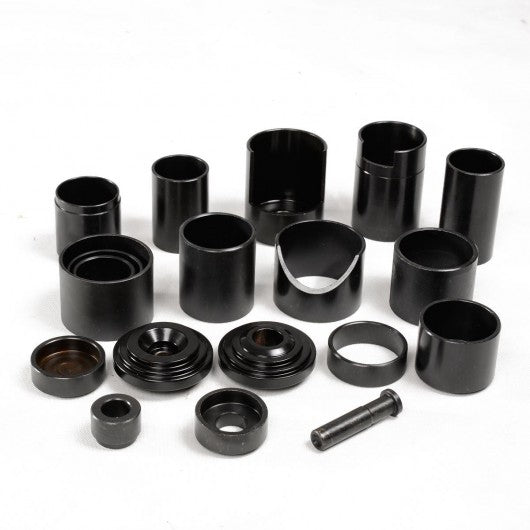 Specification: Weight: 31 LBS Package Size: 24"X20"X4.3" Color: Black Material: 45# Steel Parts Contained: 1 "C" Frame Press 1 "C" Frame Screw 3 Receiving Tubes In Sizes 2-1/4" X 3" 1-3/4" X 2-1/2" And 1-3/4" X 2" 1 Install Adaptor 1 Remover Adaptor 1 Center Plug O.D. 7/8" 1 Receiving Tube O.D. 2-1/2" I. D. 2-1/4" Length 3/4" Receiving Cap Adaptor O.D. 2-1/4" I. D. 2" Length 2" Remover Installer O.D. 1-7/16" I. 3/4" Length 1" Receiving Cup O.D. 2-1/2" I. D. 1-1/4" Length 1-1/2" Receiving Tube O.D. 2-3/4" I. D. 1-7/16" Length 2-1/4" Receiving Tube O.D. 3" I. D. 2-3/4" Length 2-1/4" Receiving Cup O.D. 2-1/4" I. D. 2" Length 2" Receiving Tube O.D. 2-1/2" I. D. 2-1/4" Length 2-3/4" Installing Cup O.D. 2" I. D. 1-3/4" Length 2-5/16" Receiving Cup O.D. 2-7/8" I. D. 2-5/8" Length 3-7/8" Receiving Cup O.D. 2-7/16" I. D. 2-3/16" Length 3-3/16" Install Cup O.D. 2" I. D. 1-3/4" Length 3" Package Include: 1 X Ball Joint Adaptor Tool Kit 1 X User Manual.
