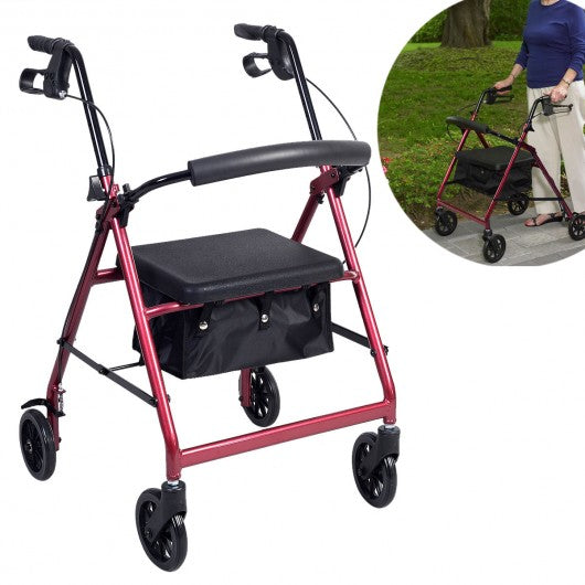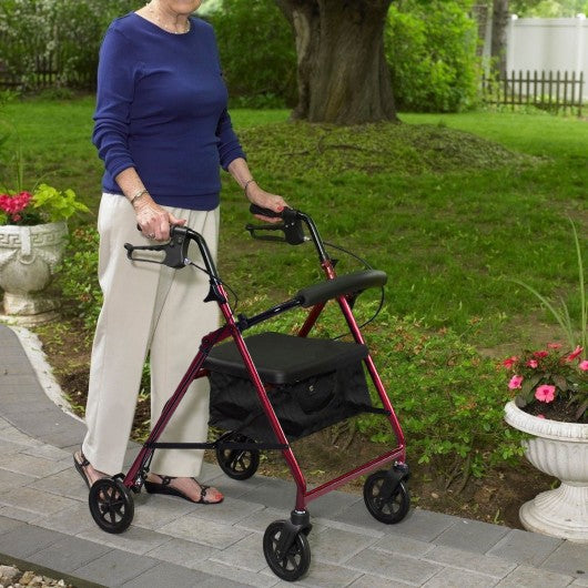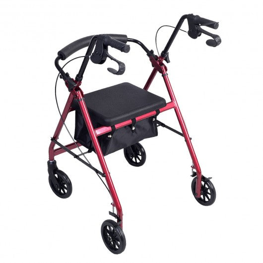 This lightweight aluminium rollator which has six-inch soft grip tires is perfect for indoor or outdoor use. Equipped with a padded seat curved backrest and easy-to-operate ergonomic hand brakes this rollator will assure you with comfort and safety. Besides the height of this rollator can be adjusted according to your needs and you can fold it for easy storage and transport. There's a zippered compartment under the seat where could be used to hold your various belongings. If you're looking for a rollator having large room for storage and easy to be carried around you should look no further than this! Brand new and high quality FDA-approved Lightweight aluminum frame 6” wheels with wheel locks Adjustable seat height and handle height Padded seat with easy folding mechanism Easy-to-operate ergonomic loops style brakes Flip up curve padded backrest Zippered compartment under seat for storage Folds into a compact unit for storage and transport