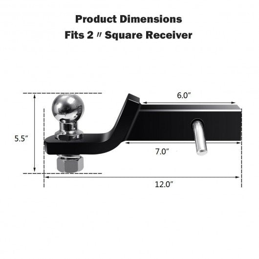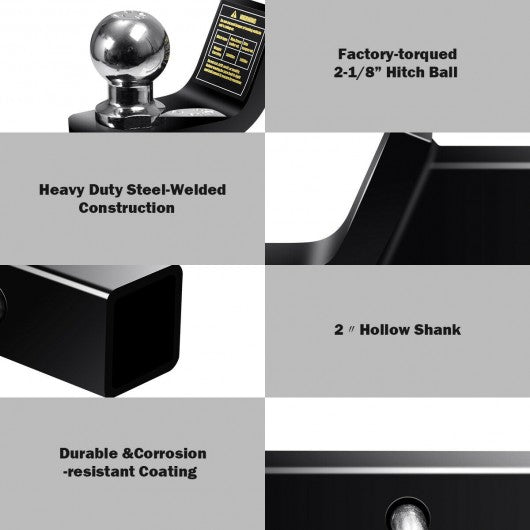 If you own multiple trailers or frequently tow a variety of loads our 2" loaded trailer hitch ball mount is designed to provide excellent towing facility! It will surely become your number one choice! With high-quality steel construction this ball mount hitch receiver is durable and solid enough ensuring you with long-term service life. This ball mount offers a gross trailer weight capacity of up to 5 000 pounds allowing you to tow a variety of heavyweight trailers. Also the hitch mount is covered with a special powder-coated finish over the electroplated layer. This provides superior resistance to rust and corrosion. The simple design also makes it a great decoration. More importantly it will become a great helper in any towing scenario and is suitable for different occasions. If your car gets stuck in the mud or runs out of gas this product will help you solve all your problems instantly. What are you waiting for? Buy one now! Fits all Class III 2-inch square receivers Covered with a powder-coated finish that provides rust and corrosion resistance Heavy-duty steel offers superior strength for mounting 2" chrome-plated hitch ball with 2" shank The hollow shank is sturdy enough and lightweight Maximum GTW Load 5000 lbs Max Tongue WT 500 lbs 2" hitch ball is included