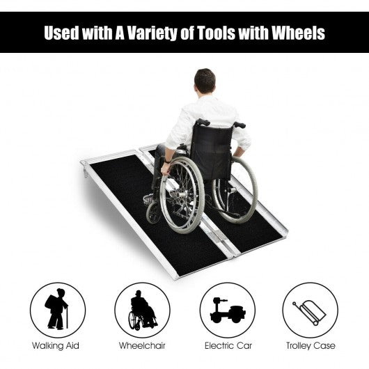 This 3' multi-fold ramp which is perfect for loading unto porches curbs landings steps or into mini vans as well as the back of pickup trucks. It is made of durable material. So you can use it for a long time. The durable welded aluminum construction is designed with a maximum 600 lbs capacity. The ramps folding design also makes it convenient for storage and portability. If you are looking for such product don't hesitate to buy it now! Portable wheelchair ramp designed for traversing steps curbs and raised surfaces Folds compact for portability and storage includes a built-in comfortable carrying handle High traction surface for optimal grip in all weather conditions Durable welded aluminum construction with a maximum 600 lb capacity