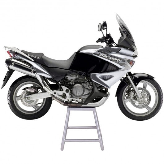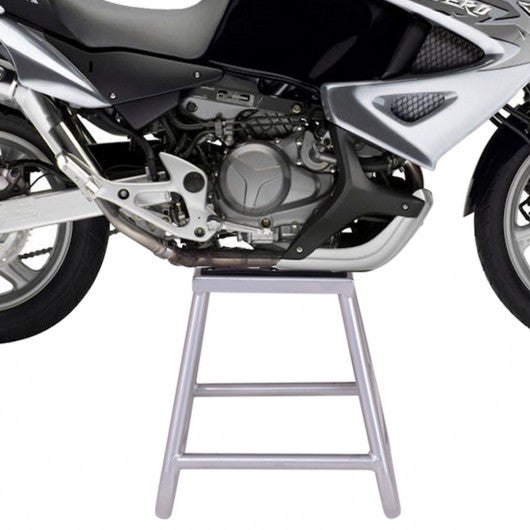 This motorcycle panel stand is made of heavy duty steel which has 1000 lbs weight capacity. The panel stand has a large round oil drain hole which is designed for easy maintenance. Thanks for its strong steel frame this panel stand can be used for a long term and bear greater weight. Silver grey power coated finish is made for rust and corrosion protection. And the 11.1 lbs panel stands match with a removable oil pan which is easy for you to take off and clean. It is ideal for most motorcycles and dirt bikes. Don't hesitate to have one! Heavy duty steel construction for long-term durability 10" x 10" anti-slip rubber paded platform protects motorcycle and panel stand from scratching Silver grey power coated finish for rust and corrosion protection Large round oil drain hole for easy maintenance It has 1000 lbs weight capacity ideal for most motorcycles and dirt bikes A removable oil pan is included for easy cleaning (only for 11.1 lbs panel stand)