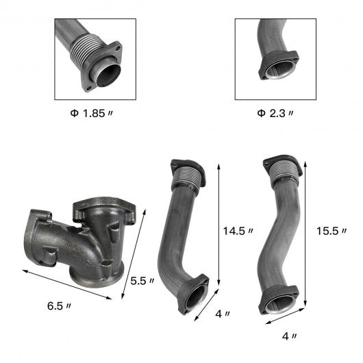 Specification: Inside diameter of inlet: 1.85" Outside diameter of inlet: 2.3" Inlet quantity: 2 Color: As the picture shows Net weight: 20.02 lbs Package includes: 1 x Exhaust up pipes and gaskets 1 x User manual