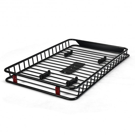 The roof rack frees up space in your vehicle with a 250 lbs capacity which is ideal for packing luggage gear and equipment. Built to last this premium carrier basket is made of durable steel construction with a black coating which helps resist from rust and scratches. This cargo carrier has 6-inch high side rails to keep items securely in place. What's more the roof rack also features a wind shield on the front to protect cargo from high-speed winds during travel and 2 reflectors for safe-driving at night. Whenever you are ready for an adventure this roof rack is a simple yet effective solution for lightening the burden of the journey. If you are looking for roof rack cargo carrier like that don't hesitate to buy it. Made of sturdy steel for a sturdy construction Premium powder coated finish enhance rust resistance Large capacity for holding more items 6" side rails provide protection to your belongings Easy mounting to vehicle's cross bars with 4 universal U-bolts Steel wind fairing for reducing wind resistance and noise 2 reflectors for safe-driving at night Perfect for hauling heavy cargos and luggage during traveling Extendable design can meet your different needs