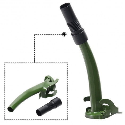 Specification: Color: Green Material: Steel Dimensions: 14.5" x 6.5" x 18" (L x W x H) Volume: 20 l/5 gallon Net weight: 8.5 lbs Package includes: 1 x Jerry fuel can 1 x Spout