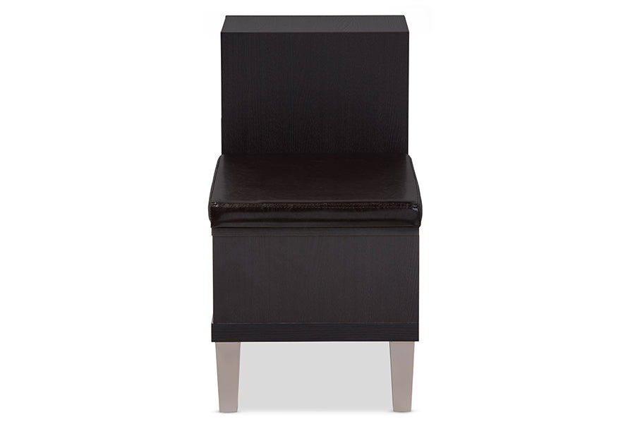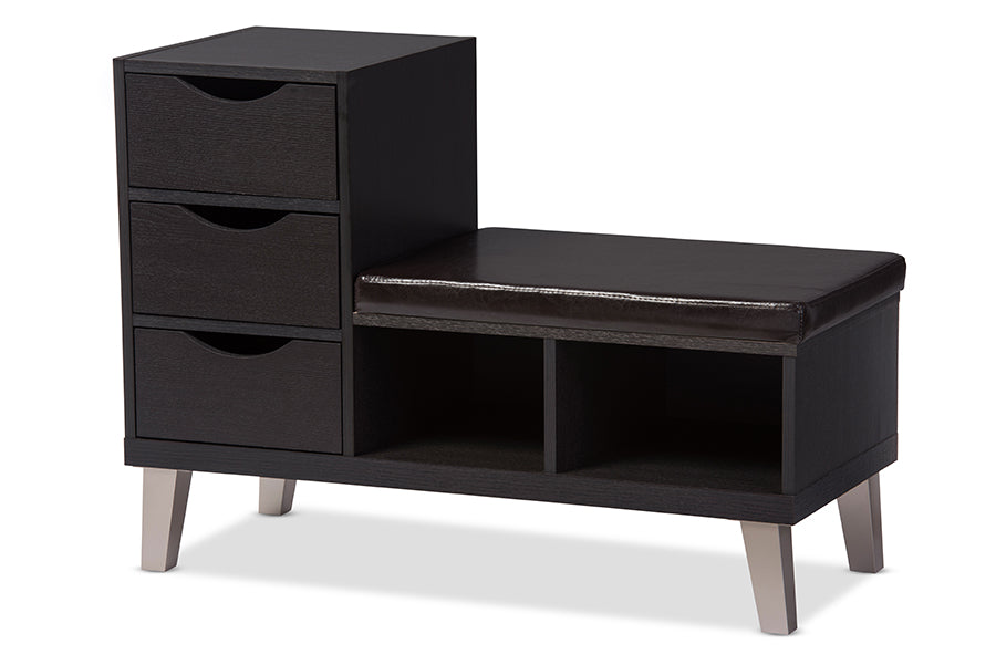 Baxton Studio Arielle Modern and Contemporary Dark Brown Wood 3-drawer Shoe Storage Padded Leatherette Seating Bench with Two Open Shelves