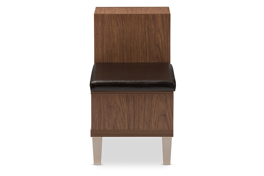 Baxton Studio Arielle Modern and Contemporary Walnut Brown Wood 3-Drawer Shoe Storage Padded Leatherette Seating Bench with Two Open Shelves