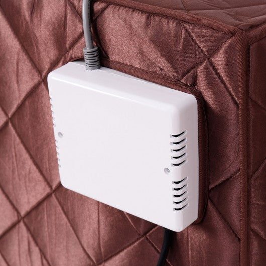 This unique high-quality far infrared fir portable sauna with exclusive beneficial features finally can be affordable and used in privacy of your home or apartment or any living environment without large spaces & special communications for it. Their designs include the most desirable features the expensive and fancy saunas have. With this portable far infrared fir sauna you will have even more conveniences and benefits then with a large wooden sauna. This far infrared fir sauna has negative ion heater that is tourmaline and 3 mica heating elements. The new heated allows this sauna to heat up quickly and more efficiently than a conventional sauna. With its satisfying design your head and hands can extend out for reading watching TV or listening to music. The advantages of the far infrared fir sauna go over a conventional sauna machine because far infrared rays are part of the sunlight spectrum; they provide more benefits at lower temperatures. Brand new and high quality Negative ion tourmaline heater 3 mica heating elements Fir sauna over conventional sauna and provide more benefits at lower temperatures 3 heating levels for foot pad Temperature range: 60 °F - 140 °F Timer can set up to 60 min Comes with a folding chair for you to relax A foot massager can help you to sweat away toxin and fat Space saver affordable portable sauna Light weight and easy to carry Convenient sauna at home or anywhere Lessen your pressure and tension and give you a nice sleep Excellent treatment for relaxing your pore and tired muscles