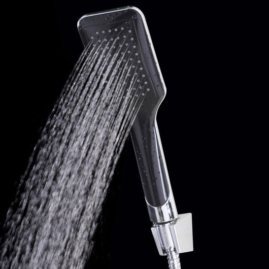 Specification: Color: As the picture shows Material of body: Aluminum alloy Material of the handle: Kirsite Material of head and hand shower: Abs plastic Size of the shower panel: 43.3" x 3" (L x W) Size of the hand shower: 3.1" x 9.7" Width of the head shower: 7.8" Accessories: 1 x Shower panel set 1 x 31.5" ss shower hose 1 x ABS square handshower 1 x ABS holder