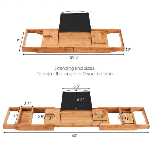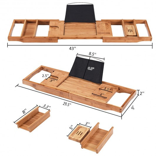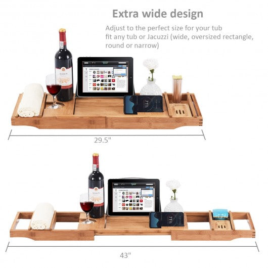 Bamboo Bathtub Extendable Sides Caddy Tray with Soap Dish