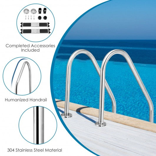 Install a safe and convenient entry to your pool with this swimming pool ladder. This ladder brings an end to painstakingly blend your back while getting out of the pool. Both handrails conforming to ergonomic design provide a better grip. And a two-step structure will never let you down. Two steps are covered with anti-skid rubber pads for more friction which effectively avoids slipping. The ladder is carefully crafted with selected 304 stainless steel thus ensuring a long life span. Featuring excellent rust resistance it stands the test of time and won’t pollute the water because of rust. In addition the ladder supports users up to lbs offering strong support and leaves you no worry. If you are looking for a 2-step swimming pool ladder like this do not hesitate to place an order! Steps with an anti-skid design will never let you down Carefully crafted with 304 stainless steel to last for years Stable construction with the weight capacity of lbs for all users Completed accessories for effortlessly installation and assembly Each part is tightly connected for stable and sturdy construction A two-step structure helps to effortlessly get out of the swimming pool Widely used on various occasions such as indoor pools outdoor pools outdoor bath pavilions etc With two handrails conforming to ergonomic design to avoid painstakingly blending backs
